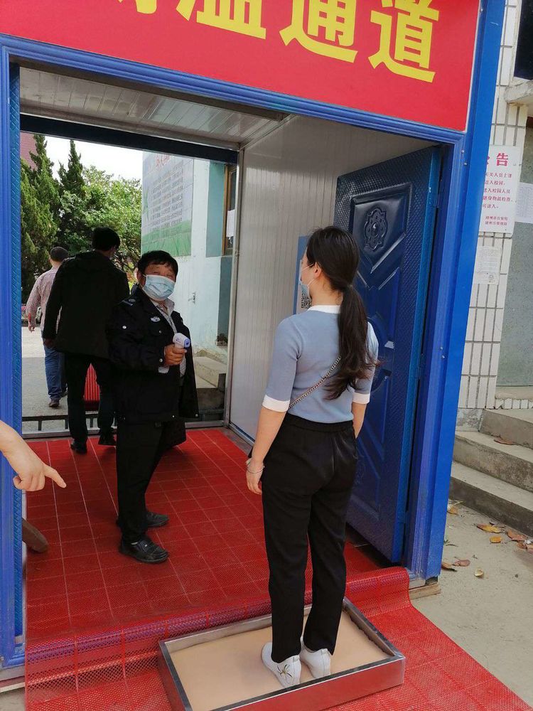 7、体温正常的同学通过检测门后,按照进校顺序间隔一米进入校园。
