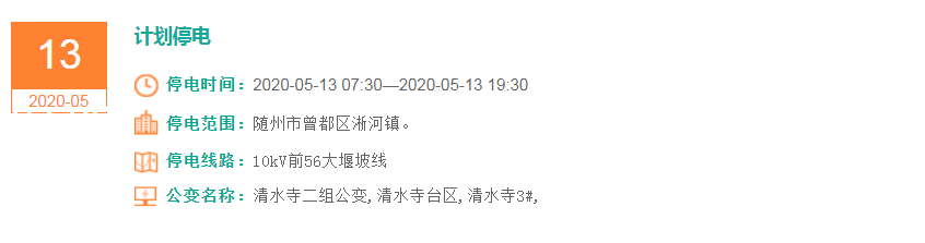 停电时间:2020-05-13 07:00—2020-05-13 19:00
