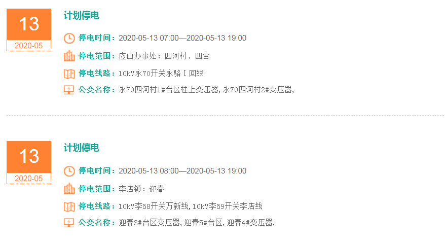 停电范围:应山办事处:四河村、四合