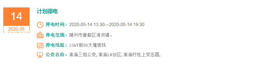 停电时间:2020-05-14 13:30—2020-05-14 19:30