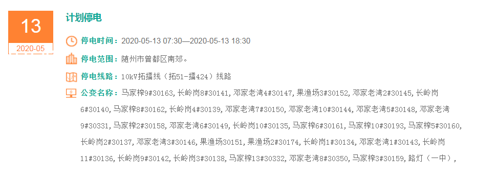 停电时间:2020-05-13 07:30—2020-05-13 19:30