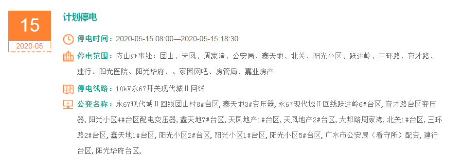 停电时间:2020-05-15 08:00—2020-05-15 18:30
