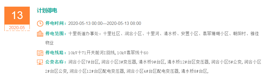 停电时间:2020-05-13 08:00—2020-05-13 19:00
