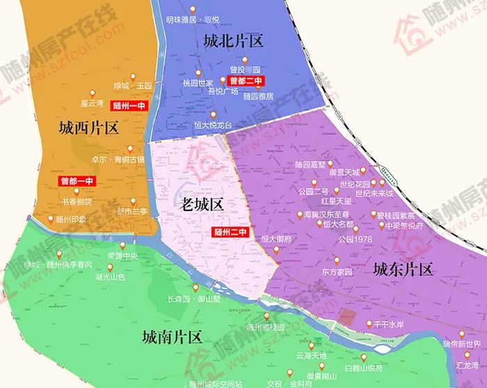 从区域来看,随州二中位于老城区周边楼盘最少,之前有消息称二中会搬迁到城南。相比之下,城北曾都二中附近楼盘越来越多。城西一直就是“学府之地”,从小学到高中全龄教育配套,随州一中、曾都一中两所中学在这里,买周边楼盘上学较方便。