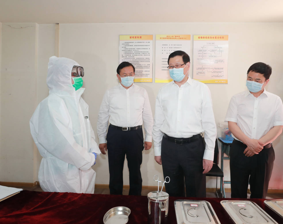 5月12日下午,省委书记应勇赴武汉市部分小区、学校、医院、商场、企业,检查调研常态化疫情防控工作,看望慰问坚守一线的护士代表,并代表省委省政府向全省广大护士致以节日祝福和诚挚问候。