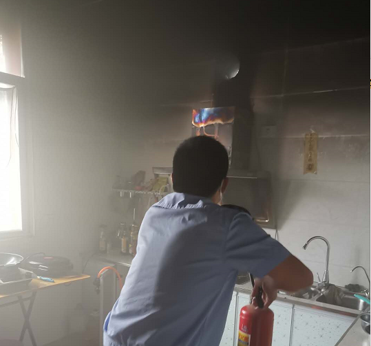 5月14日10时许,三里岗派出所接到报警:三里岗镇中学岗上一居民家中发生火灾,请求帮助。接警后,民警金鑫、辅警隗海瑞迅速出警赶到现场,发现起火点为卢家坡小区内一居民家中厨房。