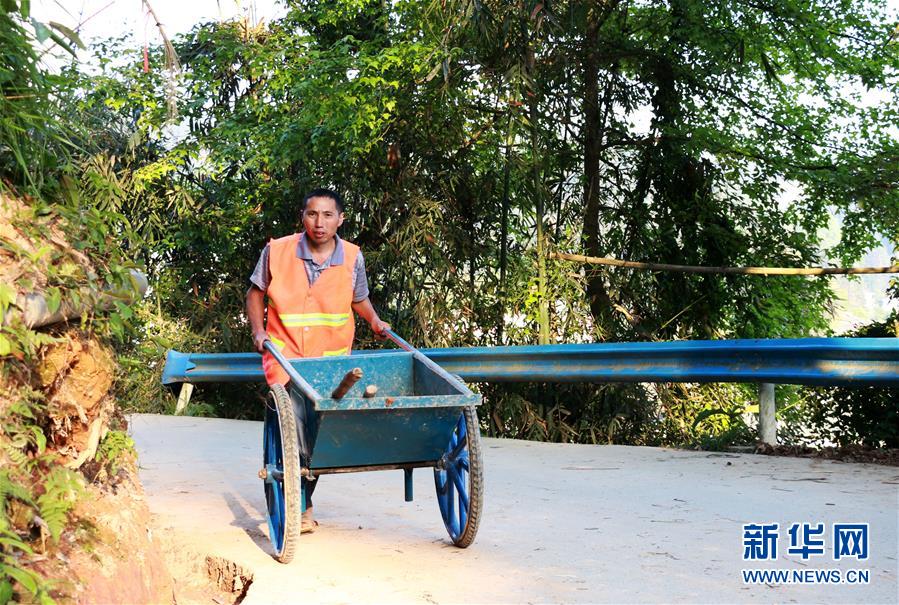 贵州省从江县丙妹镇大洞村公路养护员在工作(4月15日摄)。 新华社记者 郑明鸿 摄