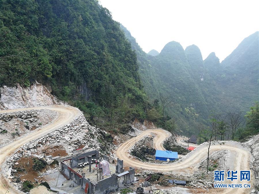 广西都安瑶族自治县大兴镇古朝村在实施道路硬化和危房改造项目(3月17日摄)。新华社记者 何伟 摄