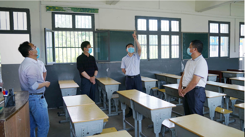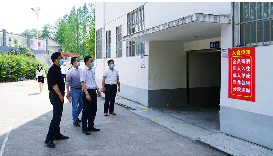 5月7日,随州市疫情防控指挥部下发通知,全市九年级复学时间定为5月20日。5月15日,澴潭镇党委主要负责人带队到澴潭中心学校,实地查看了校门的红外线测温仪点、校医室、留观室、教室、食堂、学生宿舍等重点区域的疫情防控工作,就学校复学复课前的各项工作进行了实地检查指导,确保初三学子安全有序地重返课堂。