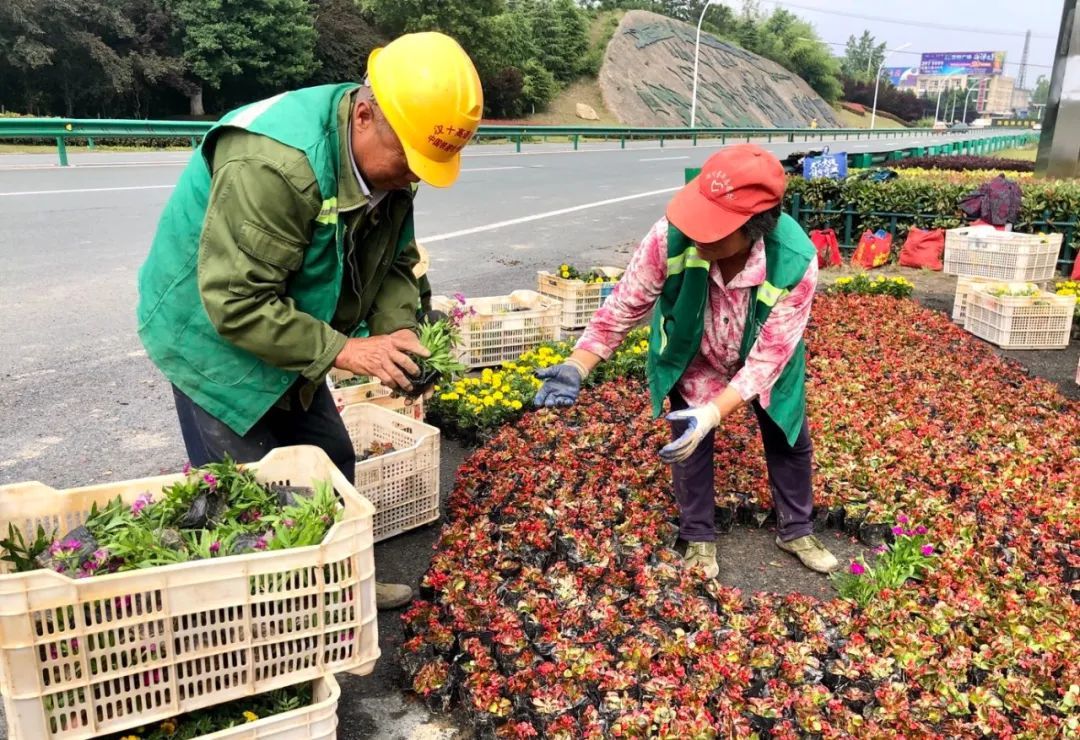 府河大桥等节点进行摆花布景