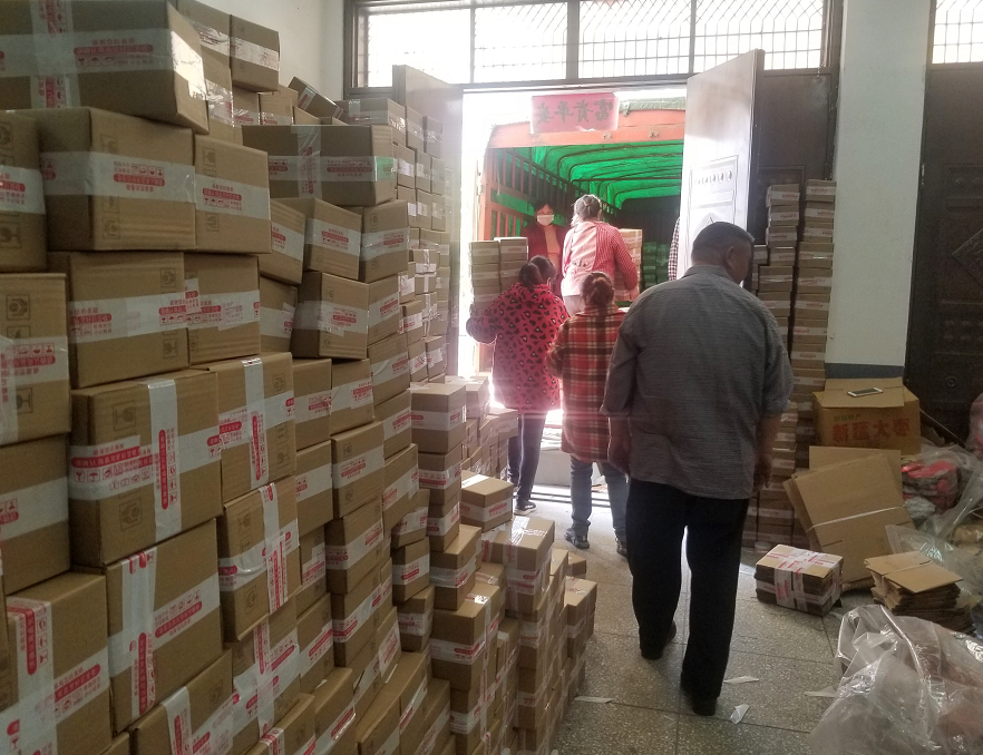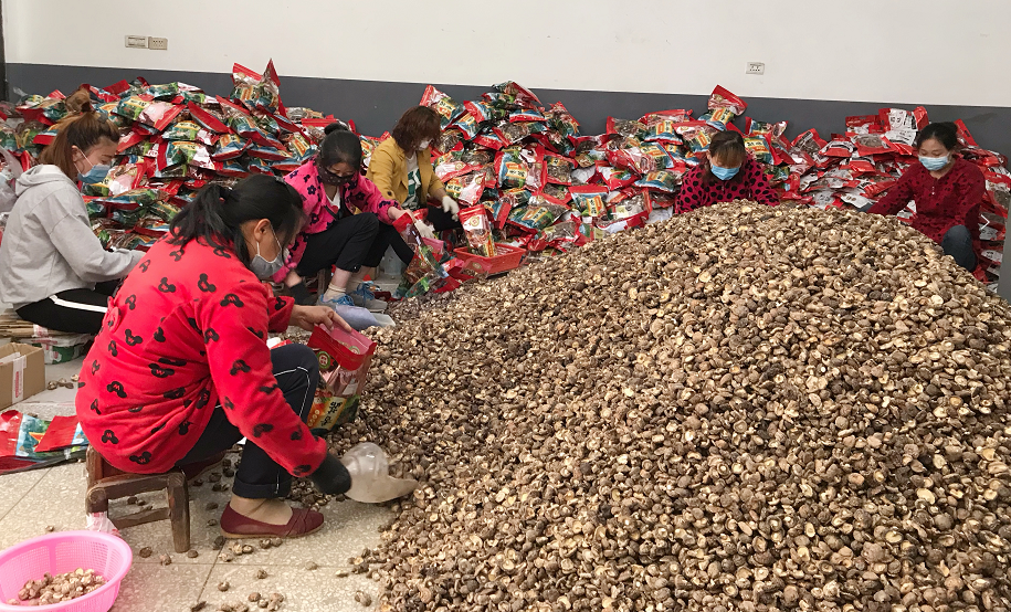 随着疫情逐步向好,订单激增。在做好疫情防控的前提下,吴帅从附近雇请来30多名乡亲帮忙分拣打包。村民王思华在这里务工一个月,便拿到了4000元的工资。