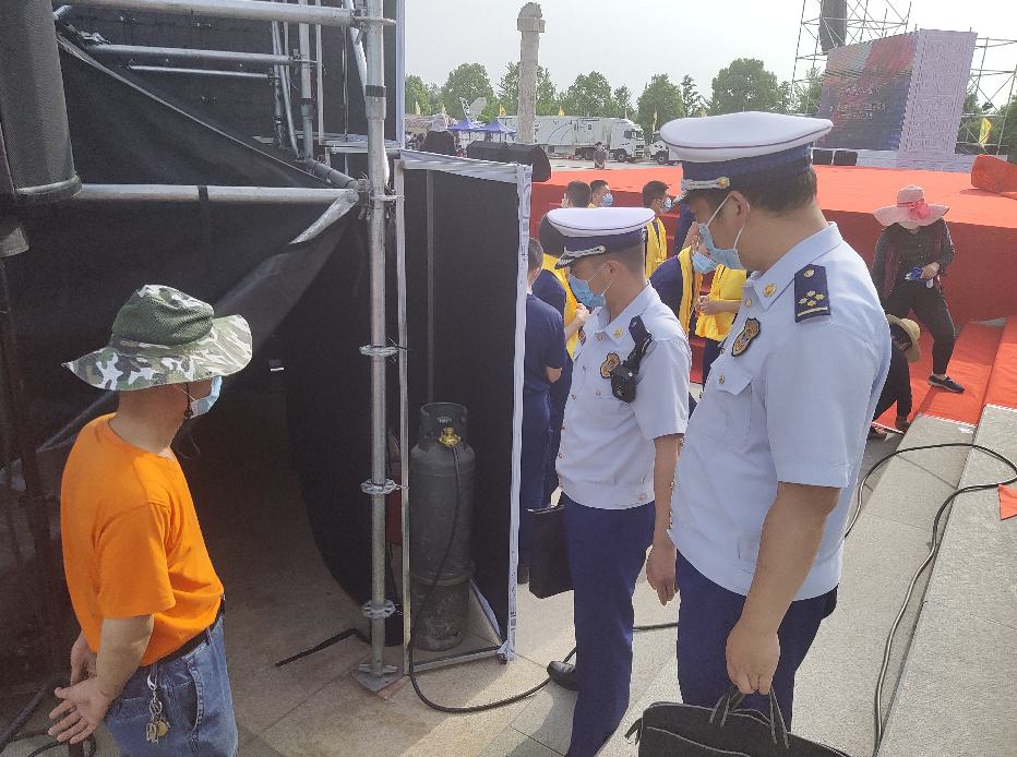 庆典举办前,大队成立检查专班,对重点场所消防设施、庆典舞台周边电器线路敷设、各项消防制度落实、工作人员培训等情况进行地毯式检查,全面消除火灾隐患。强化执勤备战,提前组织人员对重点保卫场所开展“六熟悉”活动,完善灭火救援预案,部署执勤车辆装备进入指定位置,确保一旦出现火情,能迅速有效处置。大队防火监督员深入重点场所对管理人员、控制室值班人员、微型消防站人员等进行培训,切实提高重点人员自防自救意识和对初期火灾事故的处置能力。同时,发放各类消防安全提示海报、宣传单等500余份,利用LED电子屏、微信微博、手机短信等方式,营造“人人关注消防安全”的浓厚氛围。
