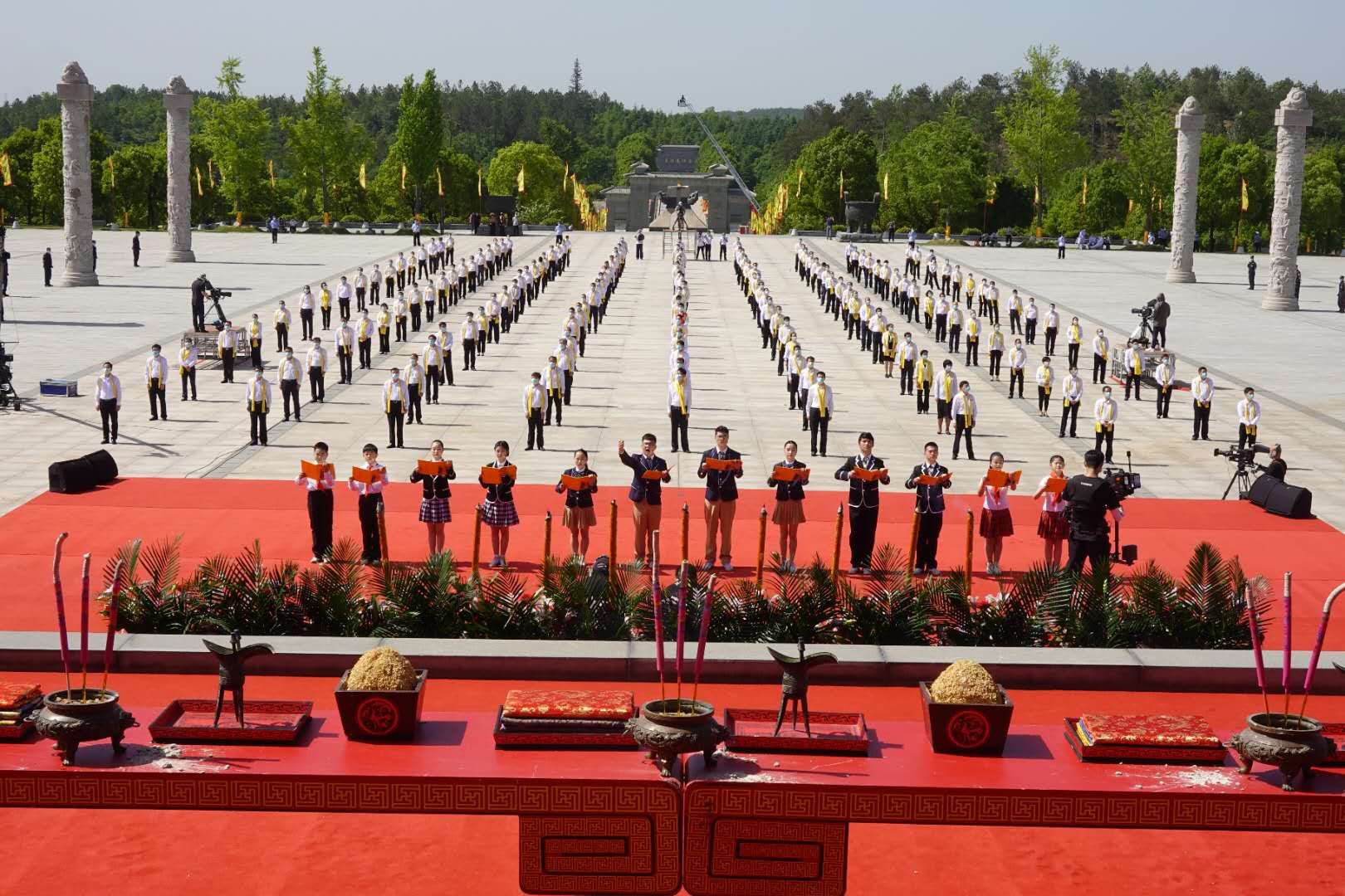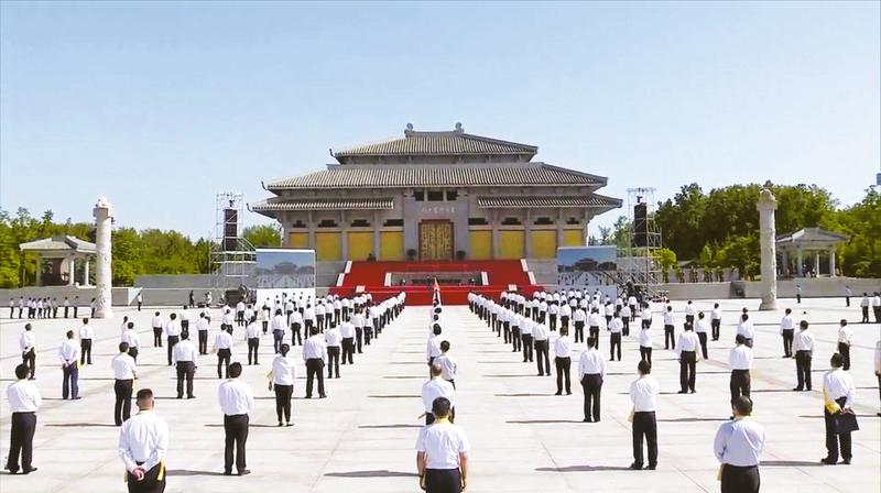 唱颂始祖。大典在《炎帝大歌》和抗击疫情公益歌曲《坚信爱会赢》的歌声中落幕。