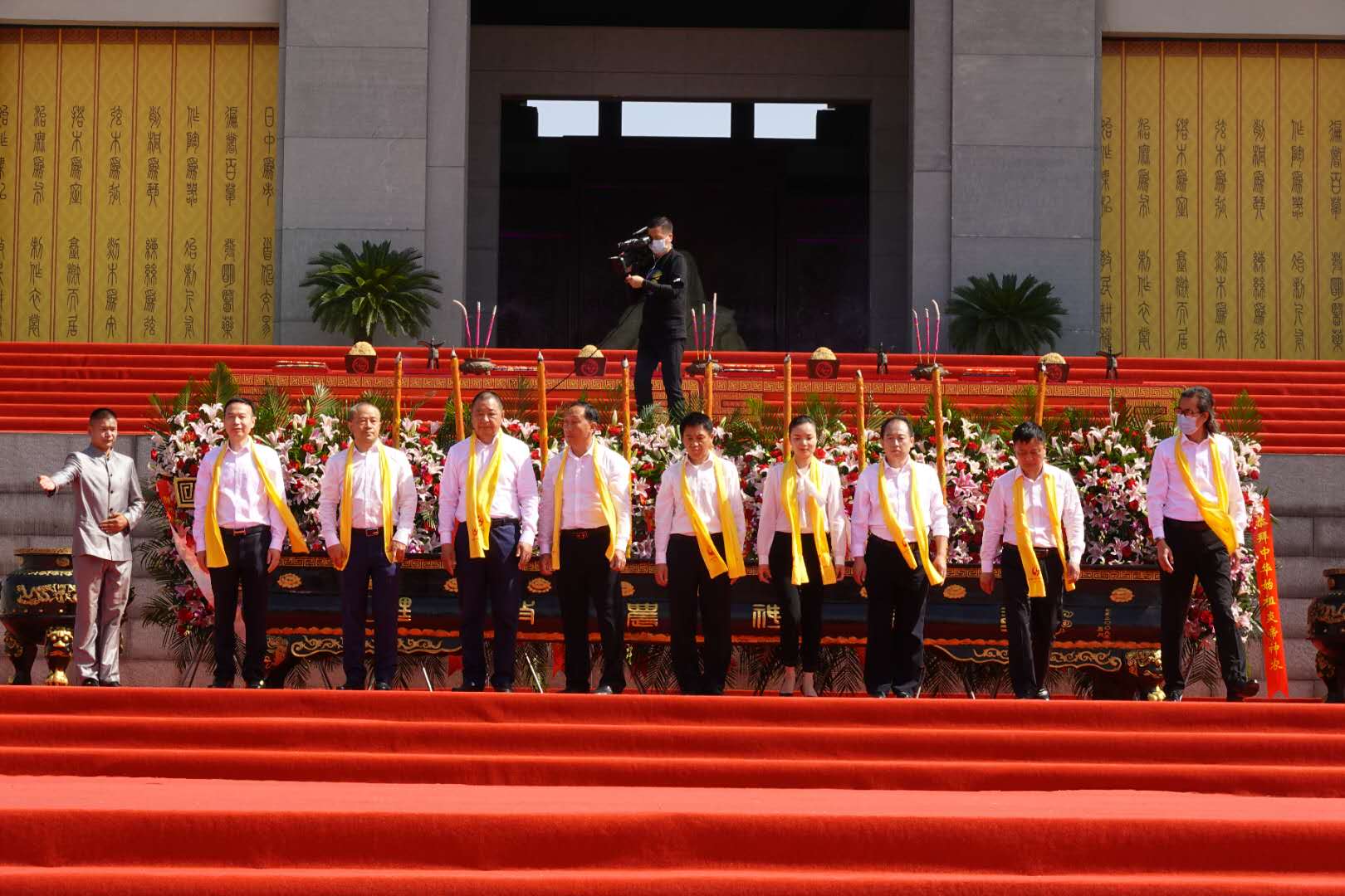 共拜始祖。现场全体人员面向炎帝神农大殿内圣像,三鞠躬行施拜礼。