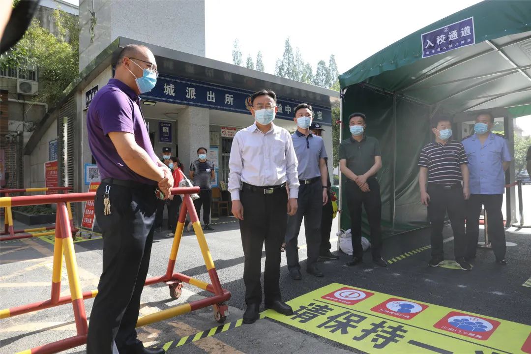 在实验中学门口,进出人员严格履行“四必”疫情防控程序,地面张贴警示线,提醒进校师生保持安全距离,学校还制定了入校流程图。张健察看了入校通道,走进教室、食堂等地,了解学生上课、就餐安排情况。张健指出,要上好开学第一课,积极普及疫情防控知识,做好师生教育引导和心理疏导,讲述抗疫先进事迹和典型,激发学生爱国热情。要把疫情防控和教学工作结合起来,在做好疫情防控、确保孩子安全的前提下做好教学工作。要广泛发动,引导社会、学校、家庭配合学校做好疫情防控,共同维护师生安全。