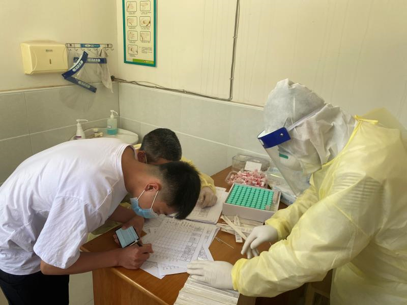 5月18日下午,唐县镇中心卫生院对该镇即将复学的初三学生进行核酸采样检测。采样前,卫生院提前做好各项准备工作,要求所有初三学生佩戴口罩,保持间隔1米以上的安全距离,文明有序排队,在工作人员的指引下,在医院门口经过体温检测、信息核对之后,进行咽拭子样本采集。(廖祺祺)