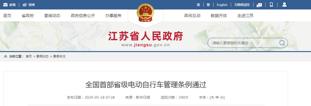 5月15日,江苏省通过《江苏省电动自行车管理条例》,《条例》将于今年7月1日正式施行。《条例》明确,电动自行车驾驶人和乘坐人应当佩戴安全头盔,否则将处警告或最高50元罚款。