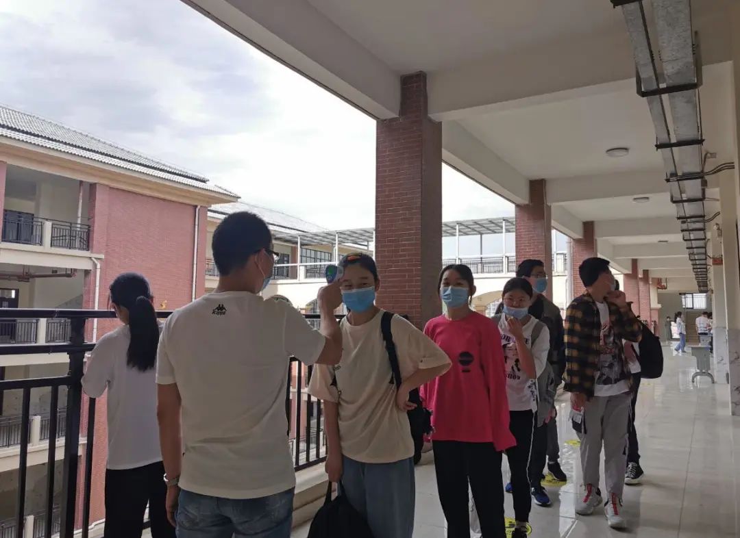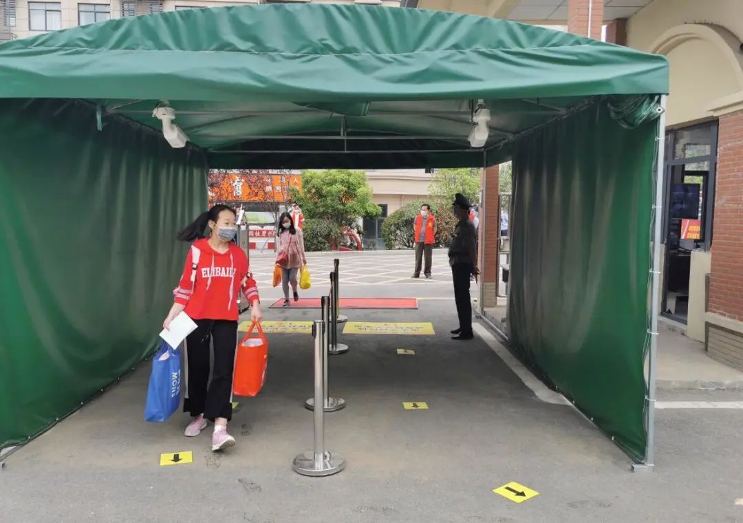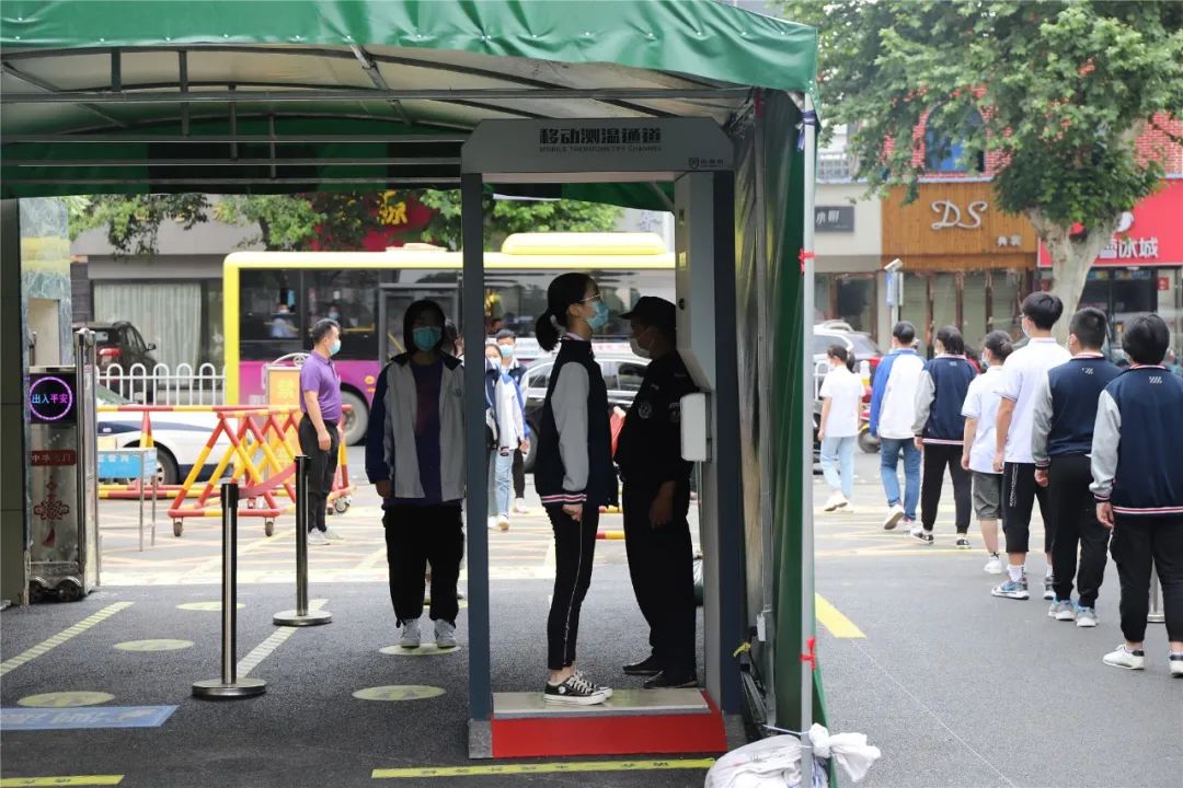 入校前,体温检测、洗手、换口罩等流程