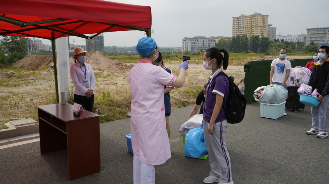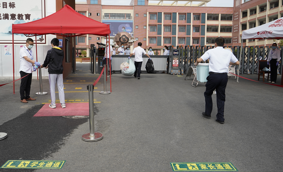 据悉,该学校采用分时错峰入校制度,将全年级学生入校时间进行排序,每半小时入校20人至30人,确保校门前不扎堆。学生与家长办理入校登记手续时,由执勤老师对其行李进行全方位消毒,通过电动三轮车、行李车等工具搬送至宿舍。学生进入学生通道,对鞋底及双手进行消毒,经机器二次检测体温通过后,才能进入校园。学生入校后,学校将进行全封闭管理模式。
