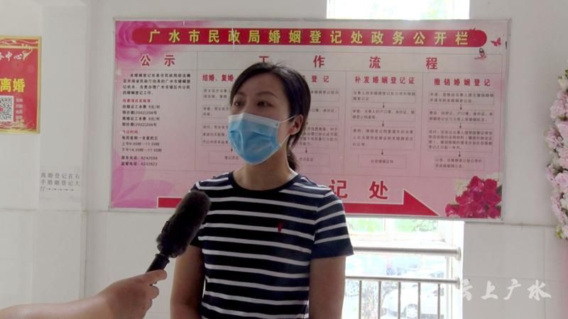 【同期声】广水市民政局副局长 李华琴: “同时提醒新人,疫情期间结婚登记尽量避免扎堆,新人只需要感情深厚,哪一天登记结婚都是好日子。”