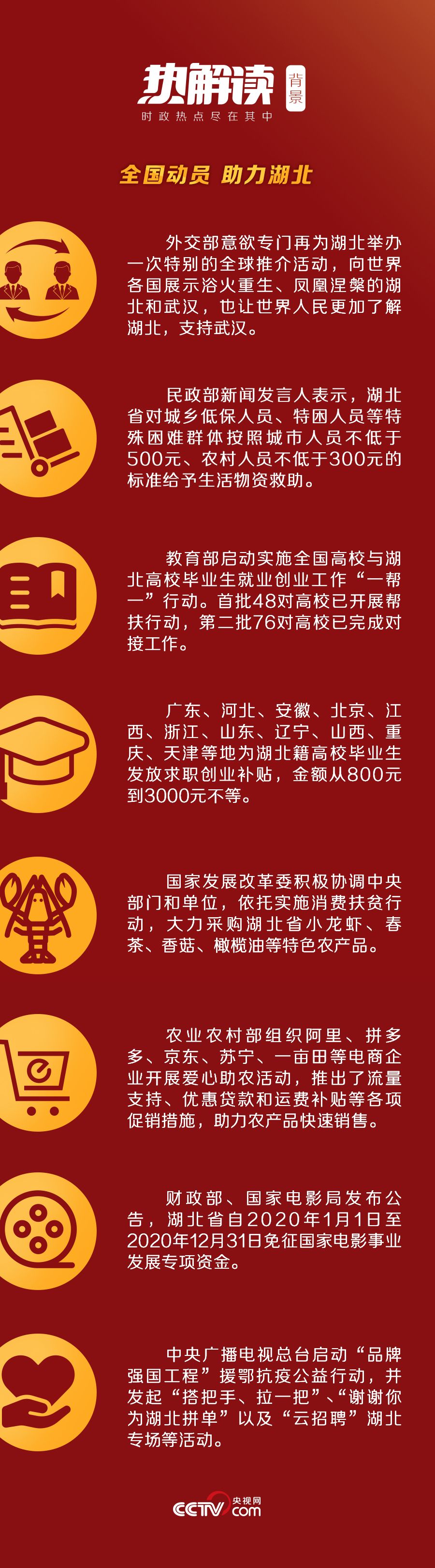他还特别叮嘱“中央和国家机关单位、中央企业要继续加大对湖北疫后重振支持力度,让各项政策措施在湖北早落地、早见效、早受益,把政策优势转化为发展优势”,并鼓励湖北同志主动作为、奋发有为,“奋力谱写湖北高质量发展新篇章”。