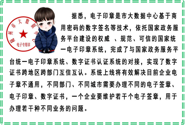 大数据中心负责人黄伦超表示,后期将建设完善电子印章信息系统,合理配置印章单位,依托“一窗通办”服务平台等,网上刻制公章环节与申请营业执照合并办理,实现企业在登记环节可自主选择刻章制作单位,免费刻制公章。通过强化各级政务服务数据共享,推进跨层级的协同服务,既为基层减负进行了尝试,又为实现“全程电子化”理清了思路,同时为政务服务一体化应用夯实了基础。