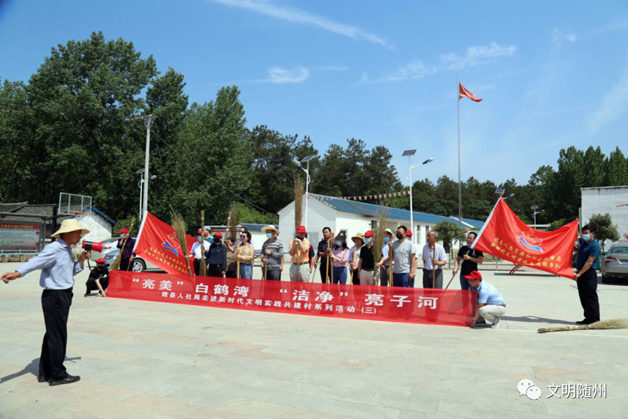 庆。利用节假日,积极参与实践站各类庆典活动。如:每年岁末,利用民工返乡之际,在白鹤湾村文明实践广场组织“欢欢喜喜过大年”春节文艺汇演活动,为广大村民带来满满“年味”;“五一“劳动节,组织局机关志愿服务队开展“亮美白鹤湾·洁净亮子河”主题实践活动,号召群众共同参与环境整治、共庆“五一”。