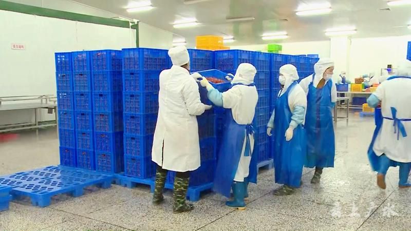 随后,成吨的虾仁在经过清洗杀菌、质量检验、包装速冻、热熔塑封后,被装进统一到包装箱,运进冷冻仓库。