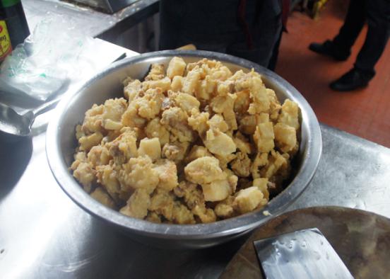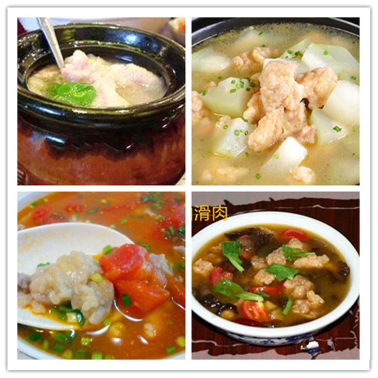 民间传说其二:有一位姓詹的名厨,有一手专门制作内馔的绝活儿——滑肉。一般人总是爱吃猪肉烹制的美味,可又嫌油腻过大而只好忌口,这位姓詹的厨师偏取特别肥腻的猪奶脯肉做菜,把去皮后切成骨牌状的猪奶脯肉块长时间用清水浸泡,再多次冲洗和沥水,减少油腻。然后用精心配制的多味调料拌匀改味。一段时间后,再上油锅烹炸,出锅后上笼蒸。这样几经调制后,送上餐桌的就是一种肉质鲜嫩,口感滑爽,口齿留香的特色美食了。于是詹厨特将这道肉馔命名为“滑肉”。从此,此馔在应山广为流传,就是办红白喜事,也少不了这道美食。随着滑肉名声远扬,大约在唐开元年间,唐玄宗听说了“应山滑肉”十分出名,便派人专程把詹厨召进宫中,让他在御膳房专门烹制滑肉。玄宗吃了极为满意,一时间詹厨备受青睐,得到许多赏赐,让别的御厨大为嫉妒。