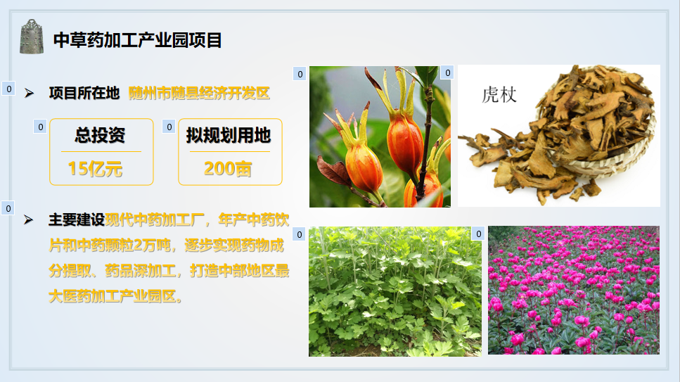 中草药加工产业、养生养老产业园在内的