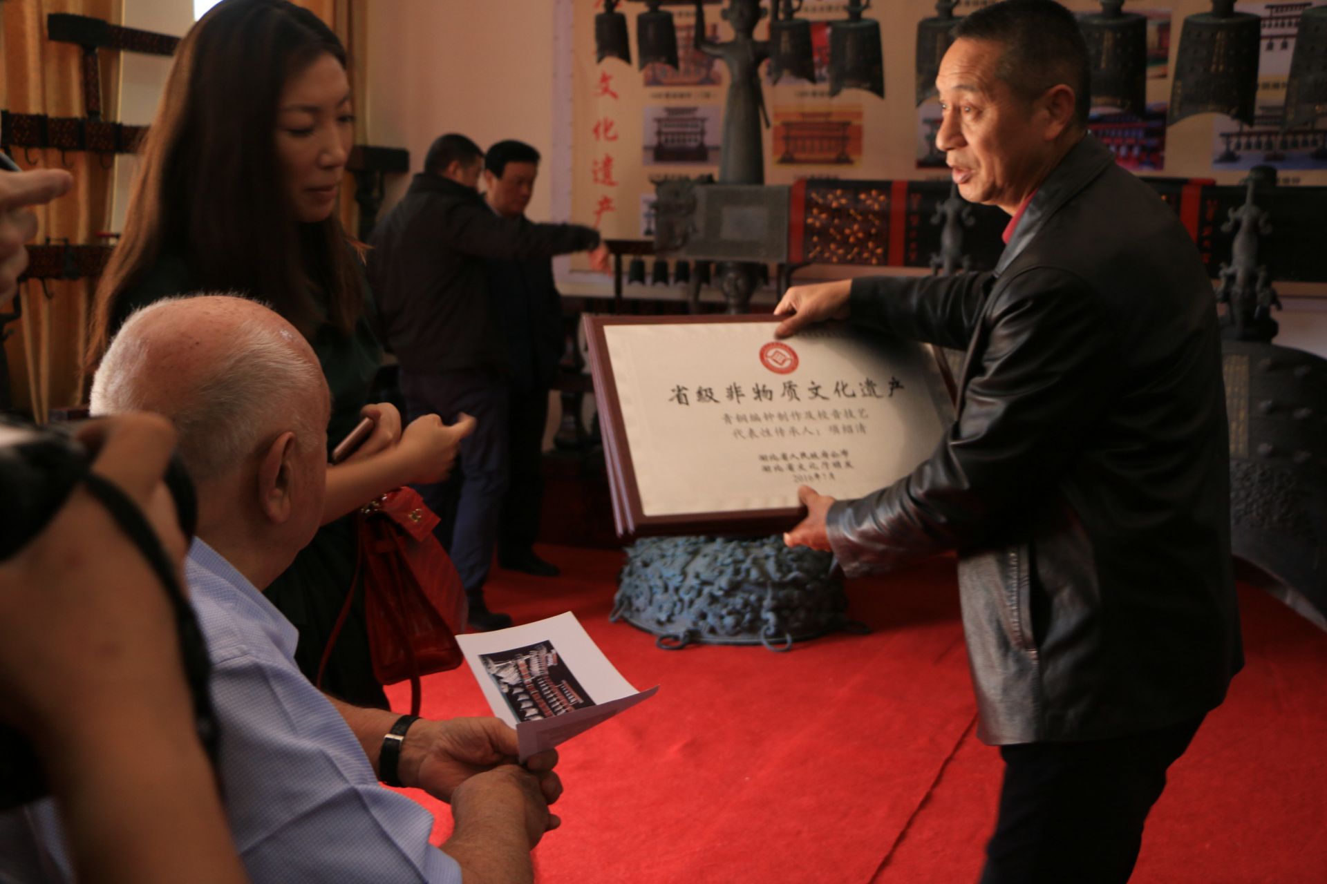 国际著名慈善家、环球与健康教育基金会发起人兼主席肯尼斯·贝林先生参观项绍清大师制作的非遗编钟