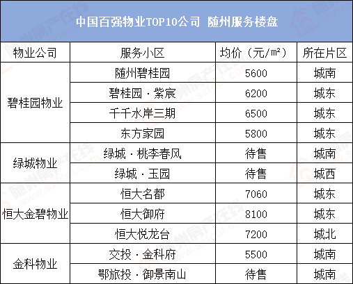 这四家物业公司在随州也同样服务诸多楼盘,赶紧看看随州哪些楼盘拥有十强物业吧。