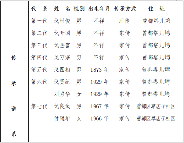 儿子戈开国继承和学习此技艺良方,由于家境富有,对求医问药之人从不收取药资,遇到贫寒之人除了管吃管住,还施舍铜钱,深受当地百姓欢迎。