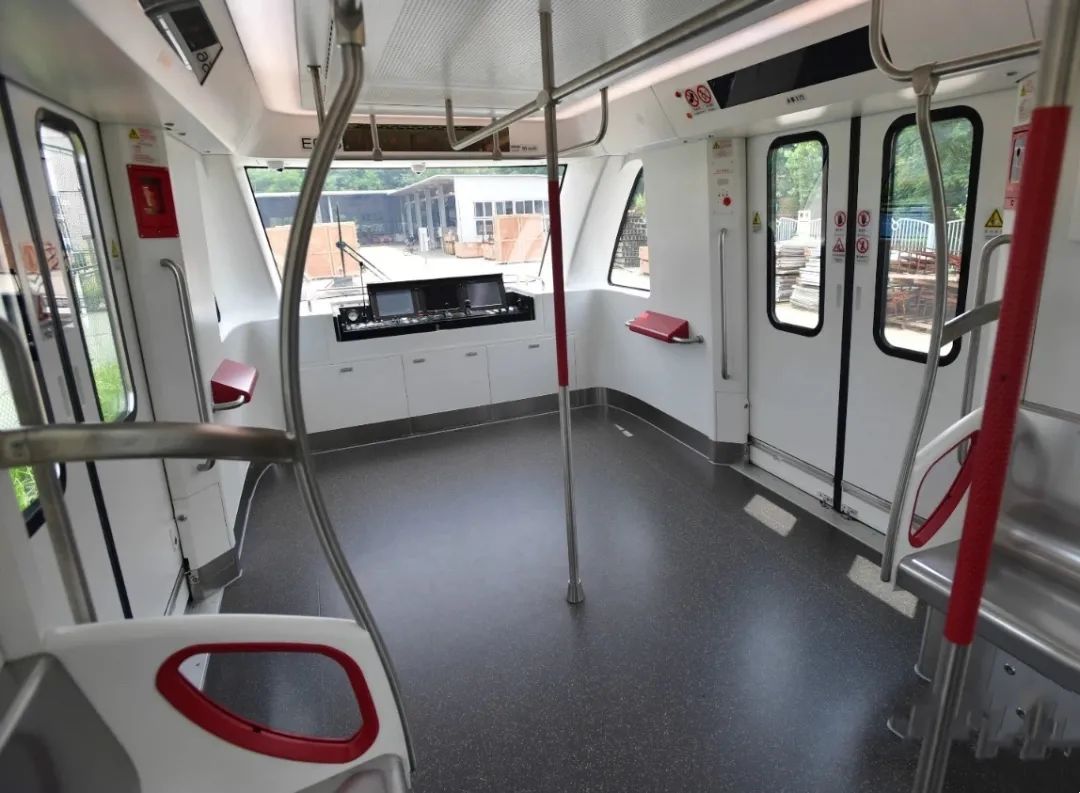 通过取消驾驶室,采用与客室一体化设计,提升了乘客乘坐体验;列车采用变频空调,可实现最大限度节能降耗,并且配置有具备杀菌、消毒、净化空气等功能的等离子空气净化器;车厢送风采用侧出风方式,避免气流直接吹乘客头部。同时,客室照明系统具备自动调节照度功能,有效提升乘坐舒适度。