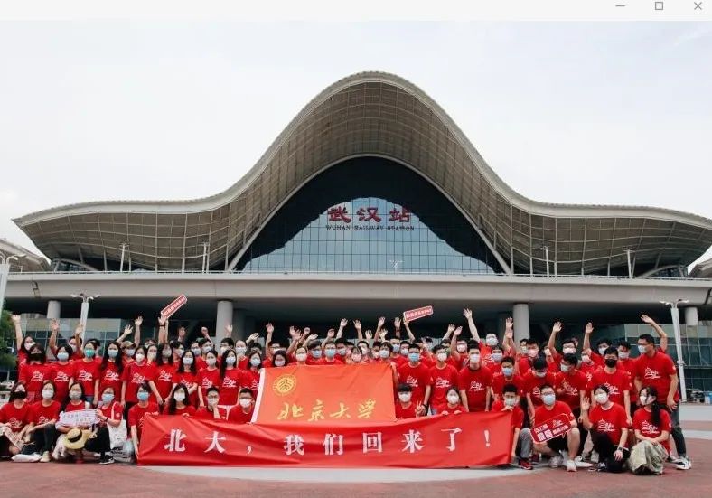 6月6日12点10分,北京大学的101名燕园学子与12名带队老师在武汉车站西广场久别重逢、合影留念……“年前就订好了节后返校的火车票,没想到受疫情影响一直未能返校,未名湖、博雅塔,阔别5个月的我,今天要回来了……”在北京大学金融法学专业就读的吴同学激动地说。