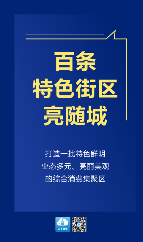 全市设置109条特色消费街区。其中:随县4条、广水35条、曾都区54条、随州高新区14条、大洪山风景名胜区2条。商户自觉维护产品质量、食品安全、公共卫生等,公安、商务、城管、市场监管等部门各司其职,合力做好特色消费街区管理工作。以“放管结合,以疏为主,科学设置,公告实施,商户自律,部门严管,改善民生,便民利民”为准则,设立一批统一经营类别、统一经营区域、统一经营时间,实行编号管理的特色消费街区。完善街区配套设施和公共服务,发展夜间经济、地摊经济,以“夜购、夜游、夜食、夜宿、夜健、夜娱”为消费主题,打造一批特色鲜明、业态多元、亮丽美观的综合消费集聚区。