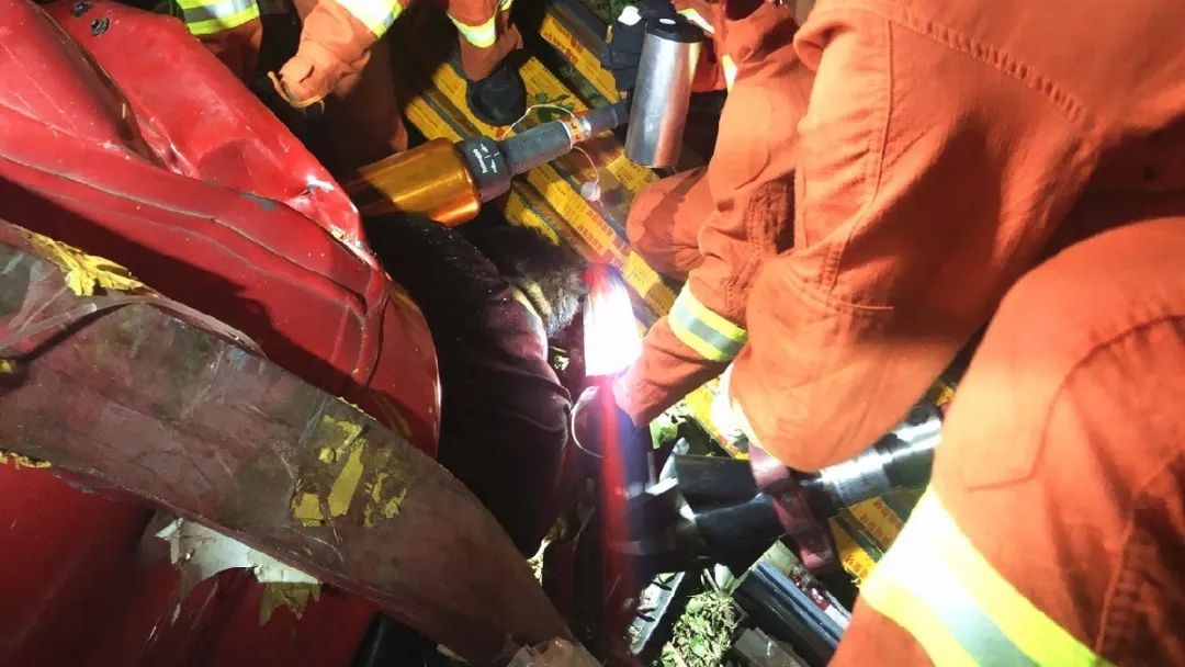 根据现场情况,指挥员立即下达作战命令,警戒组协同高管部门对现场做好警戒;救援组利用液压扩张钳、多功能剪、撑顶器等液压破拆装备迅速展开有效救援。“您先不要动,节省体力,我们会用最安全稳妥的方式把你救出来”中队长杨帆一边安慰被困人员一边组织人员清理出空间进行救援。