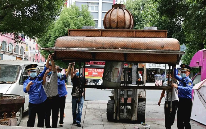 此次行动共拆除临街道路上的n形桩30余个、地锁10余处、石墩40余个,转移烧烤车1辆、僵尸车1辆。