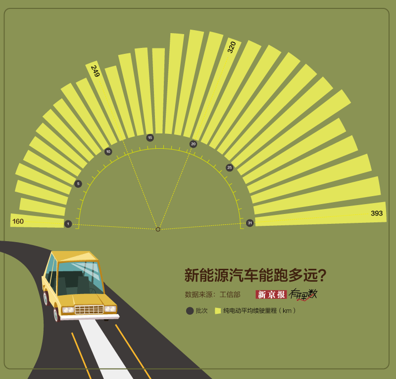 工信部相关数据显示,2014年8月,第1批免征购置税的新能源汽车车型目录中,纯电动乘用车平均续驶里程仅为160公里。