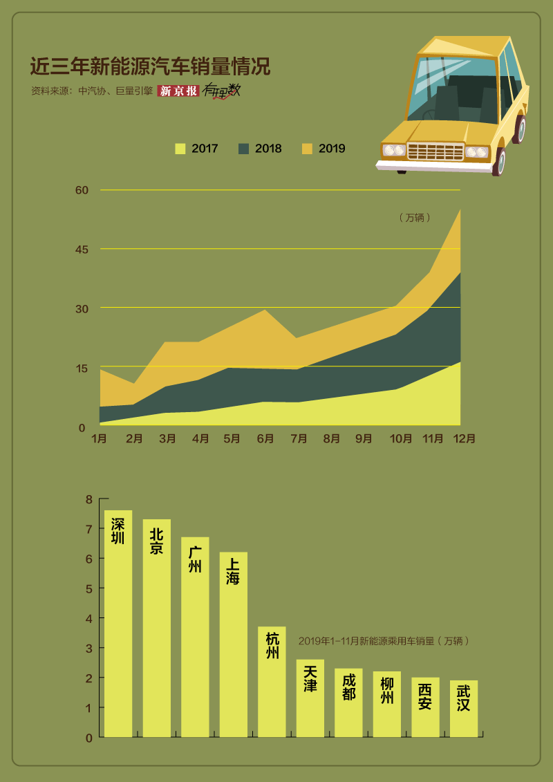 据公安部统计,截至2019年底,全国新能源汽车保有量达381万辆,只占汽车总量的1.46%。虽然新能源汽车增量连续两年超过百万辆,但其占汽车整体保有量的比重还是明显偏低。