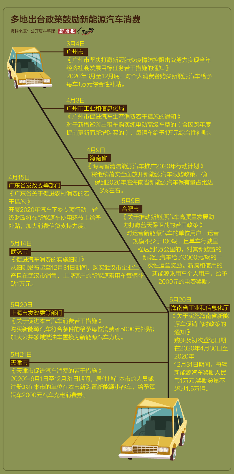 除了国家层面的关注,广州、天津、上海等多地也都明确了针对新能源汽车具体的购车补贴金额。