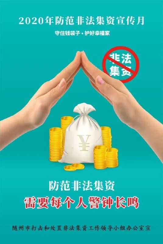 2020年6月是第8个防范非法集资宣传月,今年活动的主题是“守住钱袋子·护好幸福家”,宣传教育内容聚焦防范非法集资、P2P网络借贷、违法违规金融活动等方面,突出防范利用疫情、复工复产等由头开展违法违规金融活动的宣传,提升群众金融法治、金融风险意识。