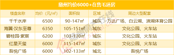 根据售楼部公示的价格,截至目前,随州楼盘均价6000-6500的毛坯房仅5家。当然还有均价6500+的楼盘,一种是恒大的带装修产品,另一种是洋房别墅等高端产品。