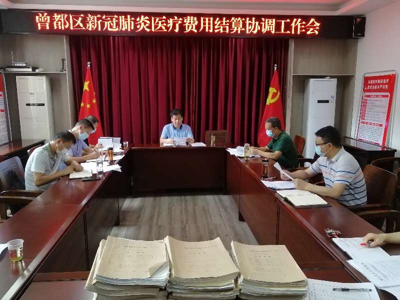 2020年6月18日,曾都区医疗保障局党组书记、局长袁振国主持召开第一次曾都区新冠肺炎医疗费用结算协调工作会议,会议明确了各部门相关职责,医疗保障部门负责做好参保患者救治医疗费用结算、支付和基金管理风险防控;卫生健康部门负责指导救治医疗机构依据国家、省新型冠状病毒感染的肺炎诊疗方案和疫情管理相关规定,对整个疫情期间确诊患者、疑似患者诊疗合理性、医疗费用统计准确性、疫情信息进行核定;财政部门负责按政策规定对确诊患者、疑似患者等个人负担部分的医疗费用进行补助。