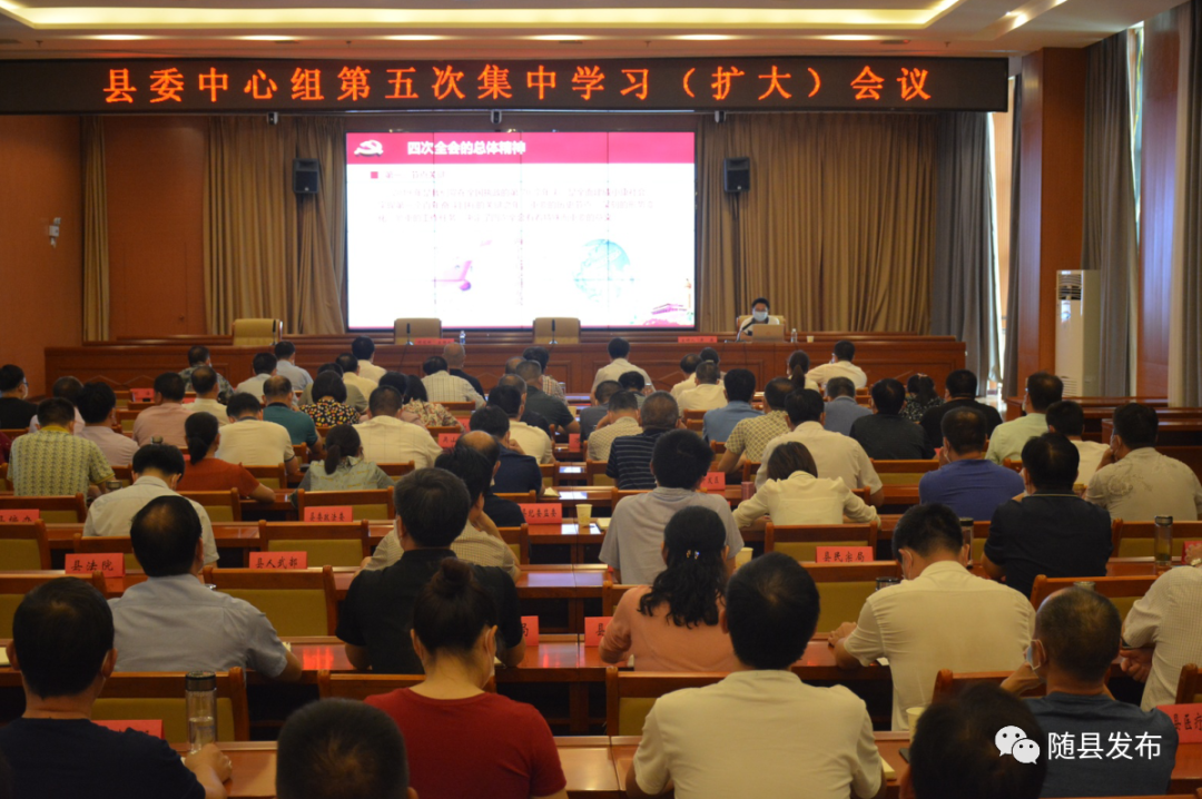 6月18日,随县举行县委中心组第五次集中学习(扩大)会议,集中学习中纪委十九届四次全会精神、习近平总书记关于反对形式主义官僚主义的重要论述等内容,进一步统一思想、凝聚共识,坚定信心、保持定力,一以贯之推进全面从严治党,为夺取疫情防控攻坚战、完成年度任务目标、全面建成小康社会凝聚强大精神力量。