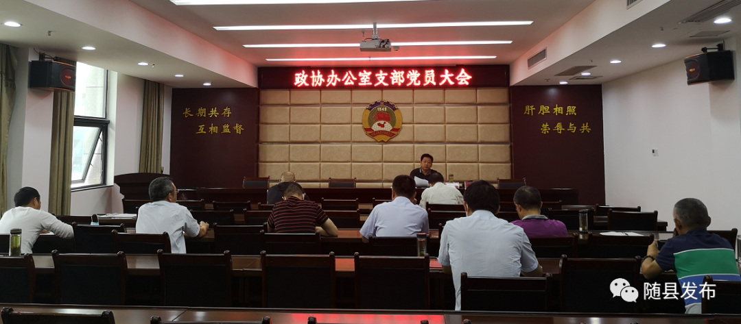 6月18日上午,随县政协办公室召开政协机关办公室支部党员大会,进行党风廉政专题教育培训。