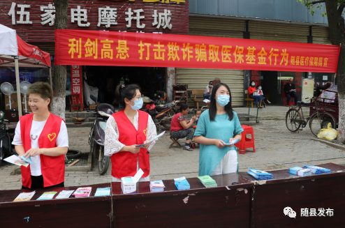 6月19日,随县医疗保障局在随县厉山镇神农大道集中开展“打击欺诈骗保、维护基金安全”为主题的宣传活动。