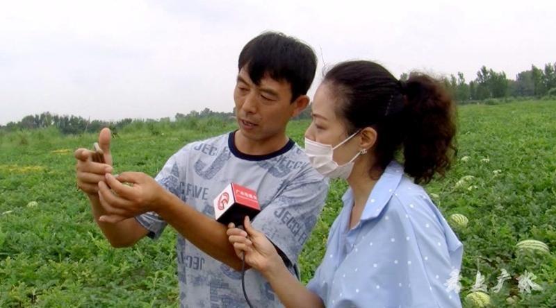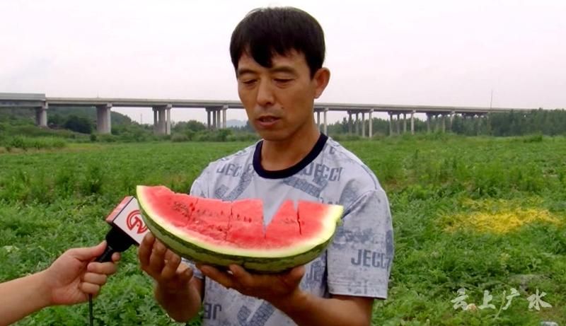 【同期声】余长春:本人是辽宁东北人,去年在湖北随州随县种西瓜,今年经过朋友介绍来到广水杨寨镇陈家河村,和我一个朋友,当地一个老板一起合作种西瓜。感觉这边土质非常好,沙土地,水源方面也可以,今年我的产量也可以,马上要丰收了。