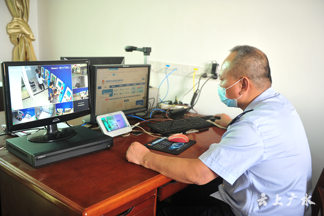 (图为税务干部利用办公室内网远程监控自助办税厅运行情况,及时为纳税人提供服务。)