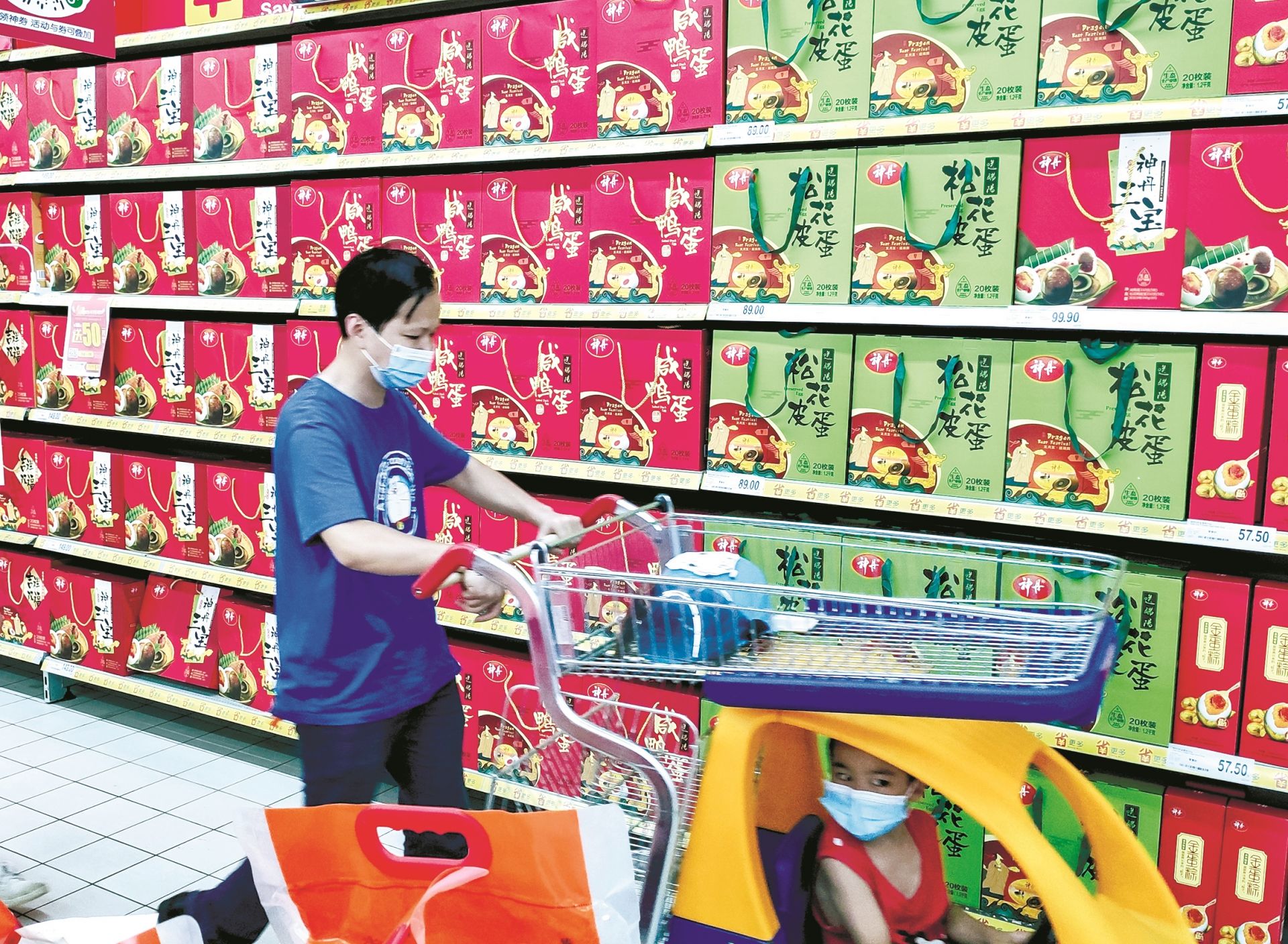 昨天上午,在武昌水果湖中百仓储超市里,摆放着端午三宝的货架前市民众多,本土老字号“扬子江”生产的新老两种绿豆糕,让不少市民一时举棋不定。